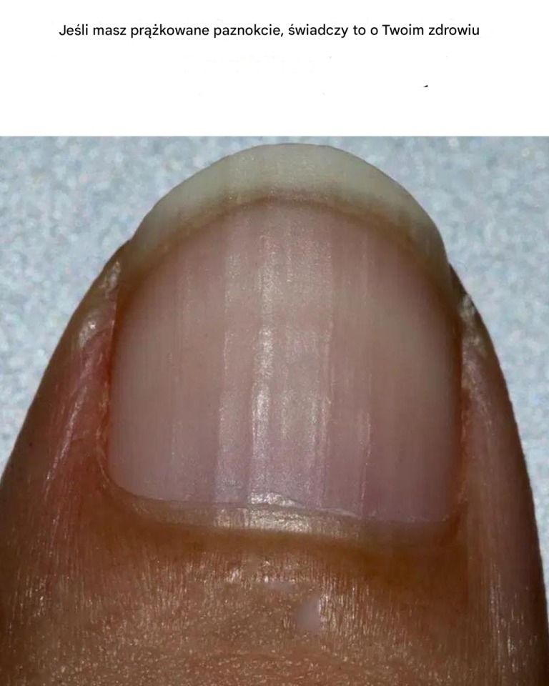 Pionowe prążki – biegnące od nasady paznokcia do czubka – są najczęstsze . Dobrą wiadomością jest to, że często są one całkowicie normalne, zwłaszcza z wiekiem . Podobnie jak zmarszczki na skórze, rozwijają się, gdy spowalnia się odnowa komórek. Jest to więc bardziej kwestia dojrzałości niż patologii.
