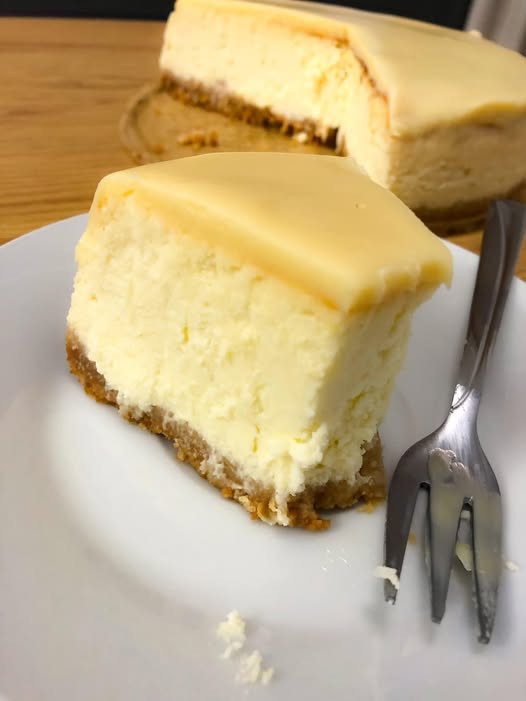 Sernik bez spodu w wersji pieczonej w kąpieli wodnej – efekt elegancki, równomiernie wypieczony, z aksamitnym wnętrzem i wilgotnością charakterystyczną dla serników na zimno, ale z klasycznym temperowanych wierzchem.